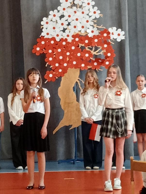 „Niech pokolenia pokoleniom podają pamiątkę dnia tego” – pod takim hasłem w środę 30 kwietnia odbyła się w naszej szkole uroczysta akademia z okazji 234 rocznicy uchwalenia Konstytucji 3 Maja. Uczniowie z kasy V i VII pod kierunkiem nauczycieli WOSu i historii przygotowali i zaprezentowali montaż słowno – muzyczny, w którym przybliżyli to ważne wydarzenie w dziejach naszego kraju. Oprawę muzyczną uroczystości przygotowała Pani Joanna Olejniczak, natomiast scenografię w barwach narodowych Pani Małgorzata Olechowska. Na zakończenie uroczystości Pani Dyrektor Grażyna Kucharska życzyła wszystkim udanego wypoczynku podczas długiego weekendu majowego.