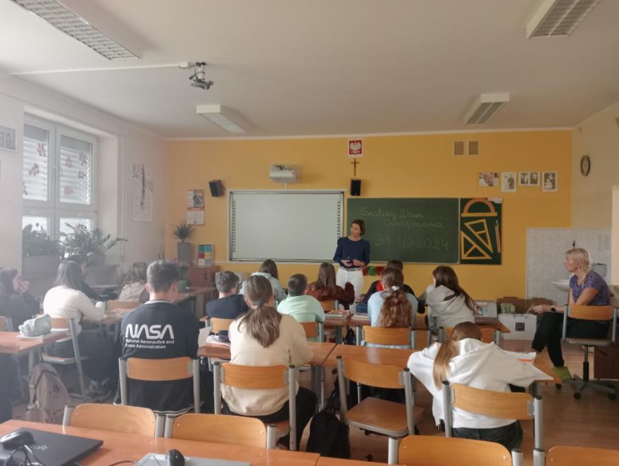 31 października obchodziliśmy w naszej szkole Światowy Dzień Oszczędzania. Jednym z kluczowych elementów wydarzenia były lekcje prowadzone przez zaproszonego pracownika banku, który podzielił się z uczniami cenną wiedzą na temat oszczędzania i zarządzania finansami. Uczniowie dowiedzieli się, jakie korzyści niesie ze sobą regularne odkładanie pieniędzy oraz jak można skutecznie zarządzać swoimi finansami już od najmłodszych lat.