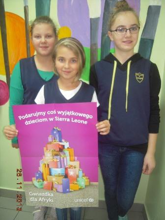 Wraz z początkiem roku szkolnego nasza szkoła przystąpiła do „Klubu Szkół Unicef”. W związku z przynależnością do klubu zorganizowaliśmy w szkole „Kącik Unicef”, a teraz włączyliśmy się w akcję Unicef – „Gwiazdka dla Afryki”.