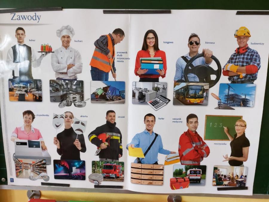 Uczniowie klas młodszych w ramach doradztwa zawodowego poznawali zawody aktora i astronauty. Dowiedzieli się, na czym polega praca w teatrze i filmie oraz jakie umiejętności są potrzebne do podróży w kosmos.