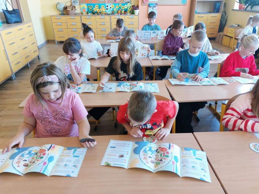 W dniu 20 października 2025 r. uczniowie klasy 2 i 3 uczestniczyli w zajęciach prowadzonych przez przedstawicielki Powiatowej Stacji Sanitarno - Epidemiologicznej na temat jamy ustnej oraz talerza zdrowego żywienia. Zajęcia są realizowane w ramach wojewódzkiego projektu edukacyjnego „MAM ZDROWE ZĘBY!!!” i „TALERZ ZDROWEGO ŻYWIENIA”. Celem głównym projektu jest popularyzacja zasad poprawnej higieny jamy ustnej oraz prawidłowego odżywiania wśród dzieci w wieku wczesnoszkolnym.